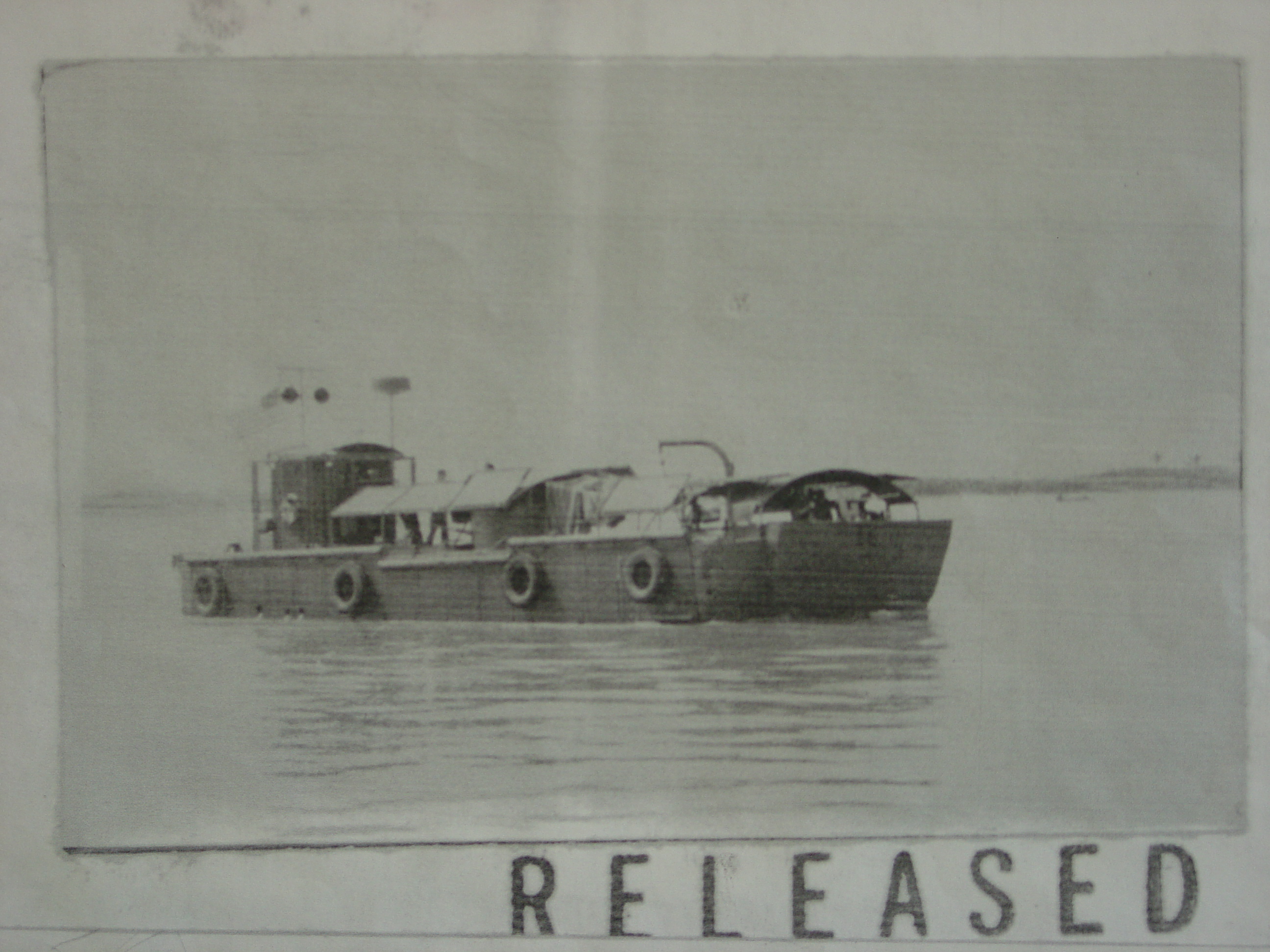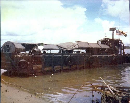 This picture shows MSR-3 remote controlling a Mine Sweeper Drone (MSD). The MSD is performing mine sweeping operations by dragging a fifteen-foot section of anchor chain with steel barbs welded onto to the links of chain. The anchor chain is fairly large, in fact it is the same chain used by U.S. Navy Destroyers for anchoring. The chain is attached to a cable and dragged along the bottom of the river or canals (as close to the shore as possible) to snag and or break wires used for command detonated mines that would be planted by the enemy and submerged in the boat/ship traffic lanes further out in the center of the river or canal. The mine would then be detonated electronically from the shore when a vessel passes over the mine.
