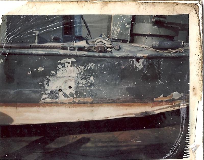 Starboard side forward of MSR-3 shows damages where B-40 (RPG'S) rockets impacted. |